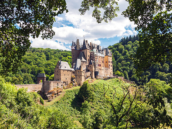 Eltz Castle is one of the most impressive attractions along the Moselle and is considered one of Germany’s most beautiful castles. This medieval hilltop castle from the 12th century is set in a picturesque forest landscape. After a short climb, visitors reach this remarkable site. Inside, a fascinating treasury displays historic furniture, jewelry, and valuable artworks. The castle offers an authentic insight into life in past centuries. A castle restaurant provides a perfect place for a relaxing break. A truly unforgettable highlight of any Moselle cycling tour.