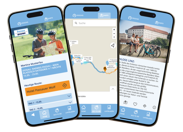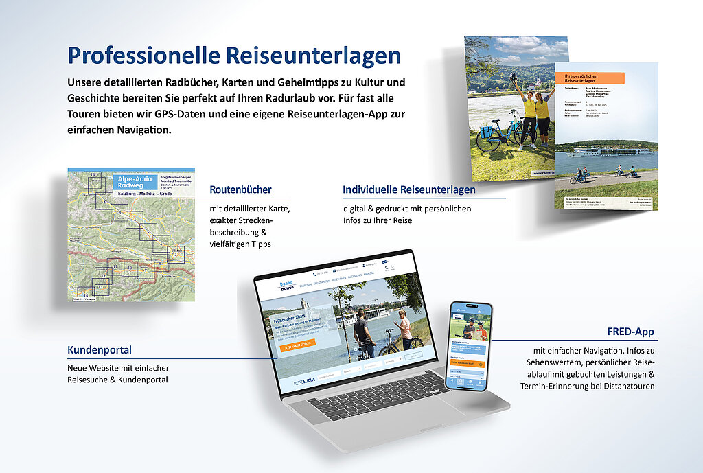 Your booked cycle tour has been carefully prepared for you. In your travel documents you will receive a printed cycle route book and - optionally for € 10 per booking - a digital version in the form of the Fred app, which is available to you as a personal cycle guide on your mobile device.